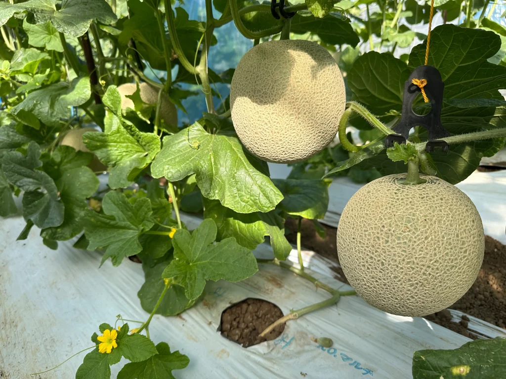 メロンの玉に葉っぱがくっついてると、その部分が乾かずにそこから腐れていく可能性があるため、千切ったりしてくっつかないようにしていきます。
