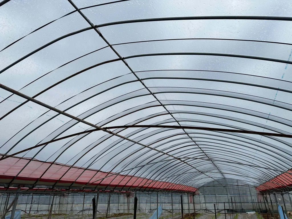 このような天気は交配にはよくありませんが、こういったパイプ立てのような作業の時には涼しくてすごく助かりますねー。